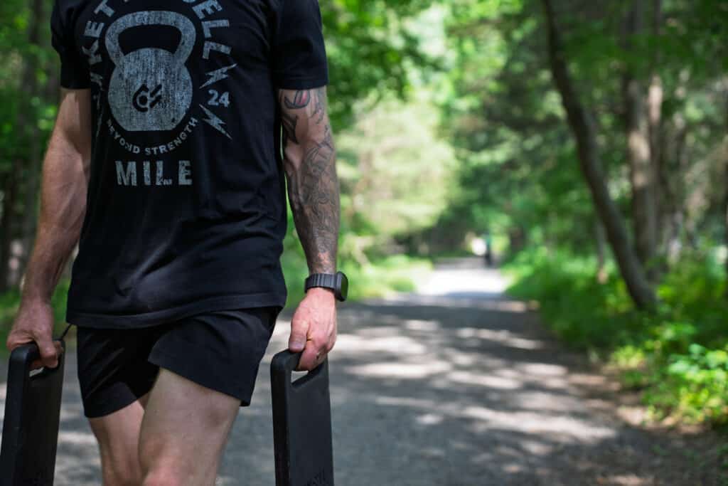 But have you ever run three miles at a threshold pace, wanting nothing more than to breathe deeply and fully when you reach the end, then had to carry weights that compress your rib cage, making it damn near impossible to get a full breath? And then go on to carry those weights for a mile as fast as you can? Then as you finish that mile, and as your shoulders ache and beg for a break, you load them again with a ruck sack to push as hard as possible for three more miles to grit out a strong finish. I’d place a heavy bet on no being the answer.